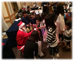 すると、サンタさんが登場し、子供たちにクリスマスプレゼントを手渡してくれました。