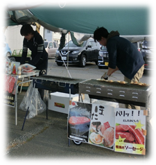 テントでは、ステーキ・ホタテ・ソーセージ・